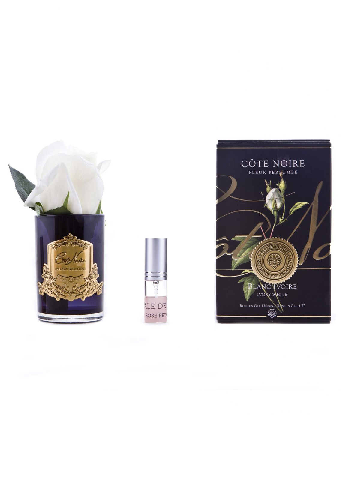 Ароматизированная роза "COTE NOIRE" (слоновая кость) черная ваза, 1 спрей 5 мл 13,5х8х