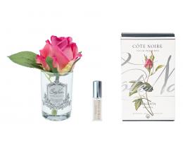 Букет ароматизированный из 5 роз "COTE NOIRE" (красный) прозрачная ваза, 1 спрей 15 мл