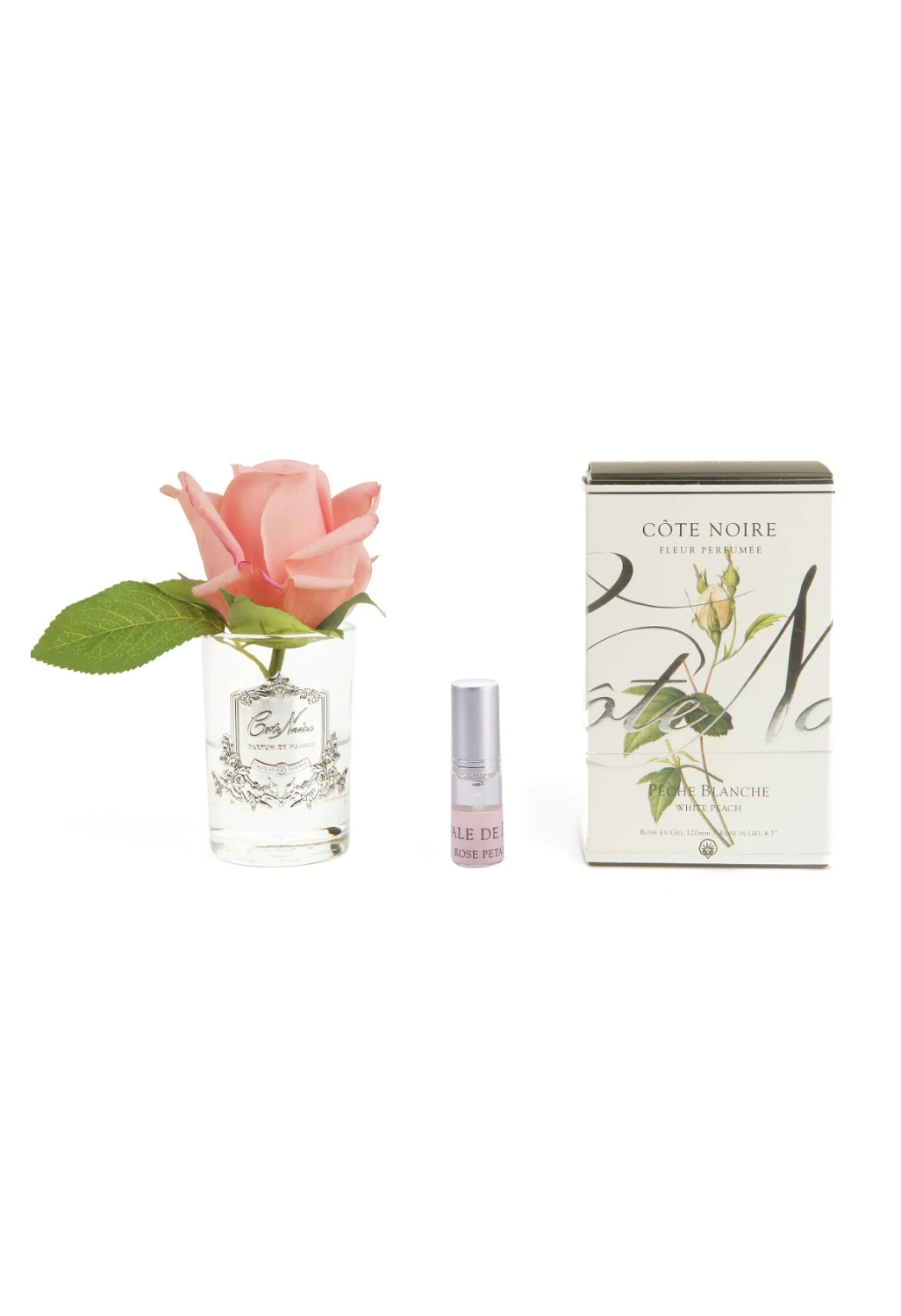 Ароматизированная роза "COTE NOIRE" (коралловый) прозрачная ваза, 1 спрей 5 мл 13,5х8х