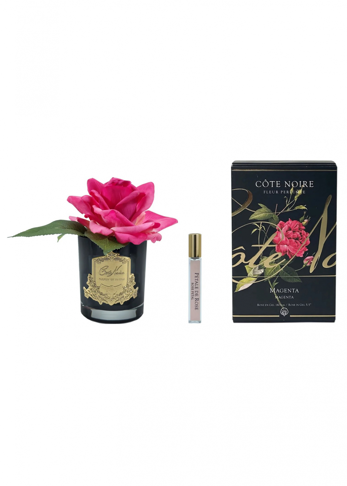 Ароматизированная французская роза "COTE NOIRE" (ярко-розовый) черная ваза, 1 спрей 15 мл