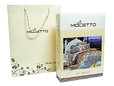 Упаковка: ПВХ пакетПродукция торговой марки "Mioletto" отшивается на текстильной фабрике в Китае с использованием современного, в техническом отношении, оборудования и передовых технологий. Основная специализация - постельное бельё, для производства которого используются экологически чистые материалы: хлопок, эвкалиптовое волокно.