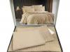Для производства постельного белья серии "NEW CAMILLE" торговой марки "Maison D'or" используется жатый сатин (100% хлопок). Особенностью этих комплектов является, то что поверхность пододеяльника и наволочек гофрированная (жатая). Современные технологии производства сатина, на основе многократного переплетения хлопковых волокон двойного кручения, позволяют добиваться этой ткани особой гладкости и шелковистости. Сатиновое постельное бельё обладает широким спектром потребительских достоинств, такими как прочность и лёгкость, гигроскопичность и воздухопроницаемость, стойкость к многочисленным стиркам и несминаемость.