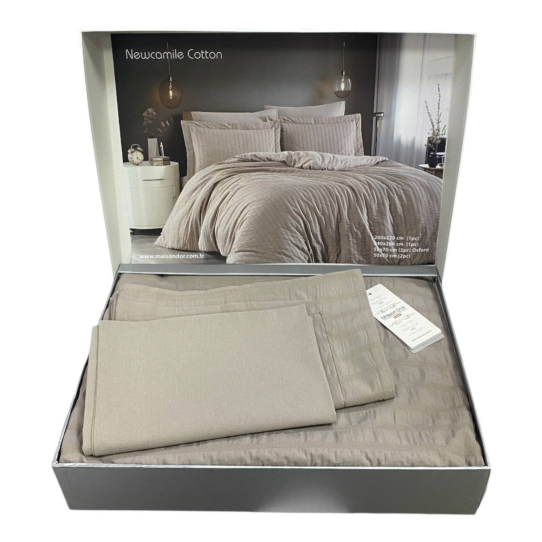 Для производства постельного белья серии "NEW CAMILLE" торговой марки "Maison D'or" используется жатый сатин (100% хлопок). Особенностью этих комплектов является, то что поверхность пододеяльника и наволочек гофрированная (жатая). Современные технологии производства сатина, на основе многократного переплетения хлопковых волокон двойного кручения, позволяют добиваться этой ткани особой гладкости и шелковистости. Сатиновое постельное бельё обладает широким спектром потребительских достоинств, такими как прочность и лёгкость, гигроскопичность и воздухопроницаемость, стойкость к многочисленным стиркам и несминаемость.