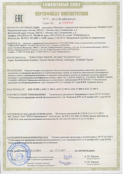 Застежка:пододеяльник-поговицы; наволочка-клапан(запах)