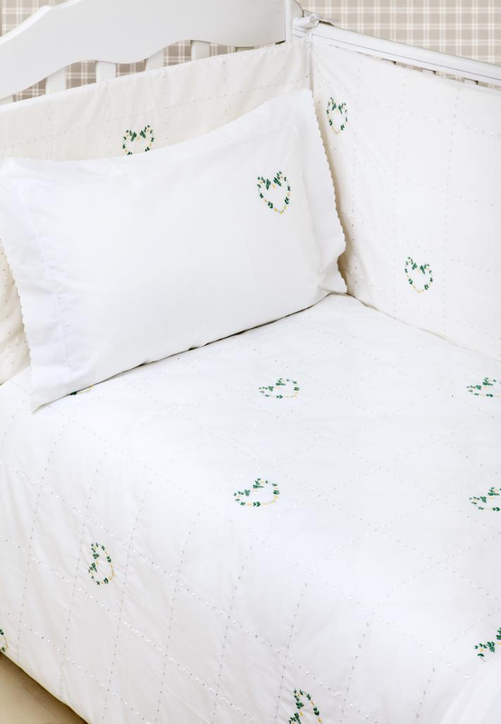 Бортик "СЕРДЕЧКИ NEW", ТМ "BOVI", р-р: 45x390см, 100% хлопок, перкаль, цвет: белый/зеленый/желтый