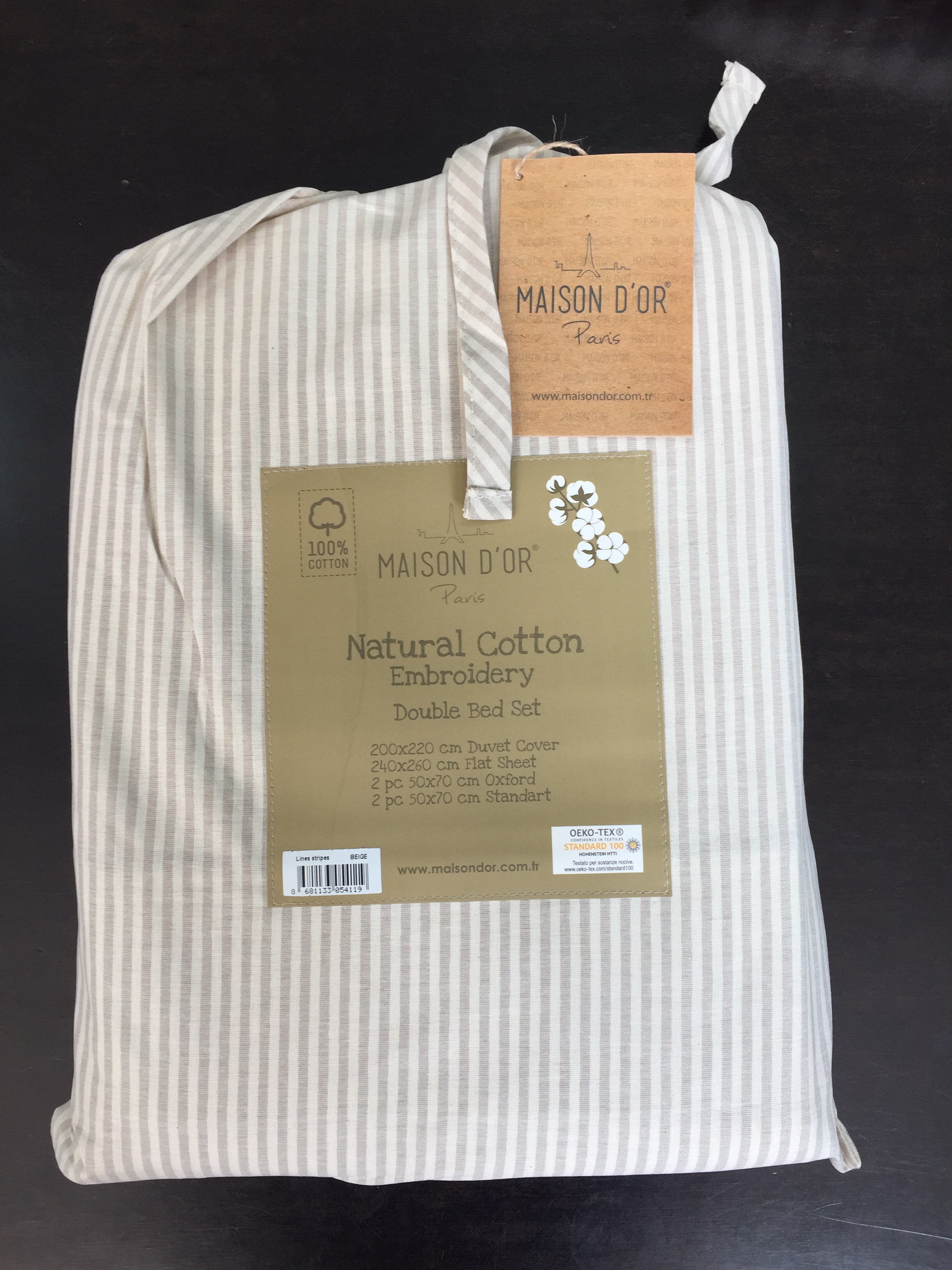Для производства постельного белья серии "LINES STRIPES" торговой марки "Maison D'or" используется трикотаж разновидности Ринг (100% хлопок). Для изготовления полотна используются волокна хлопка средней длины 27-35 мм, что обеспечивает изделиям небольшую рыхлость и ворсистость.