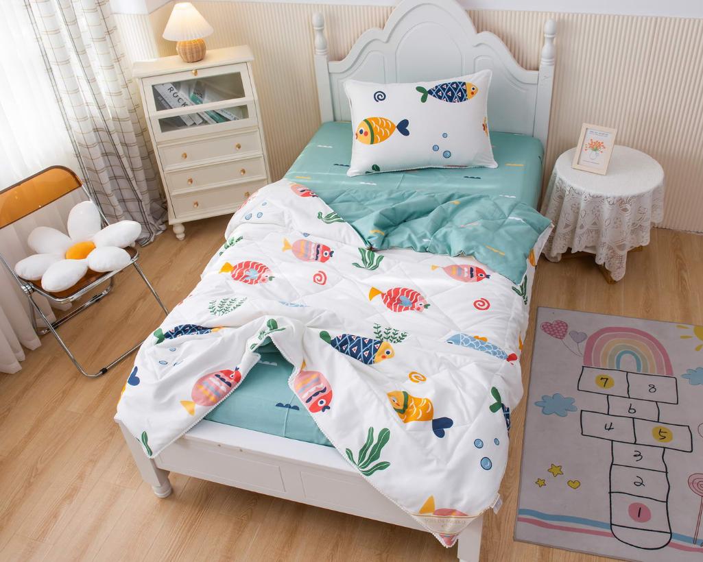 Постельное белье с одеялом детское "Sofi de Marko" Аквариум (белый) Сатин, 1,5 спальный