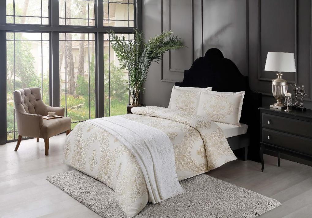 Постельное белье "TAC" Happy Days сатин ANGEL Семейный, кремовый