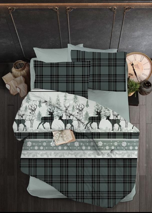 Постельное белье "DO&CO" HAPPINESS (зелёный) Фланель, Евро