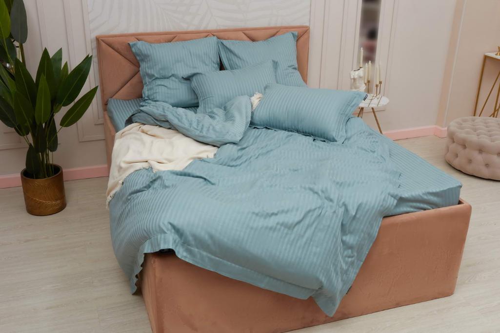 Постельное белье "Sofi de Marko" Моне (изумруд) Страйп Сатин, 1,5 спальный