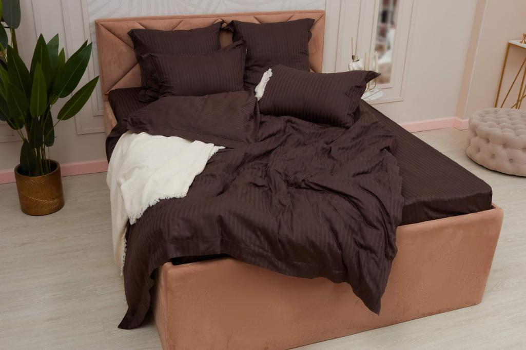 Постельное белье "Sofi de Marko" Моне (шоколад) Страйп Сатин, 1,5 спальный