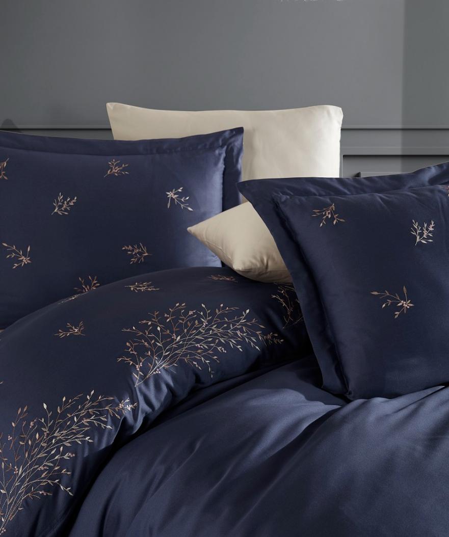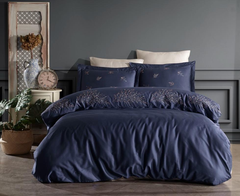 Постельное бельё "DANTELA VITA" сатин с вышивкой ASRIN (синий), Евро