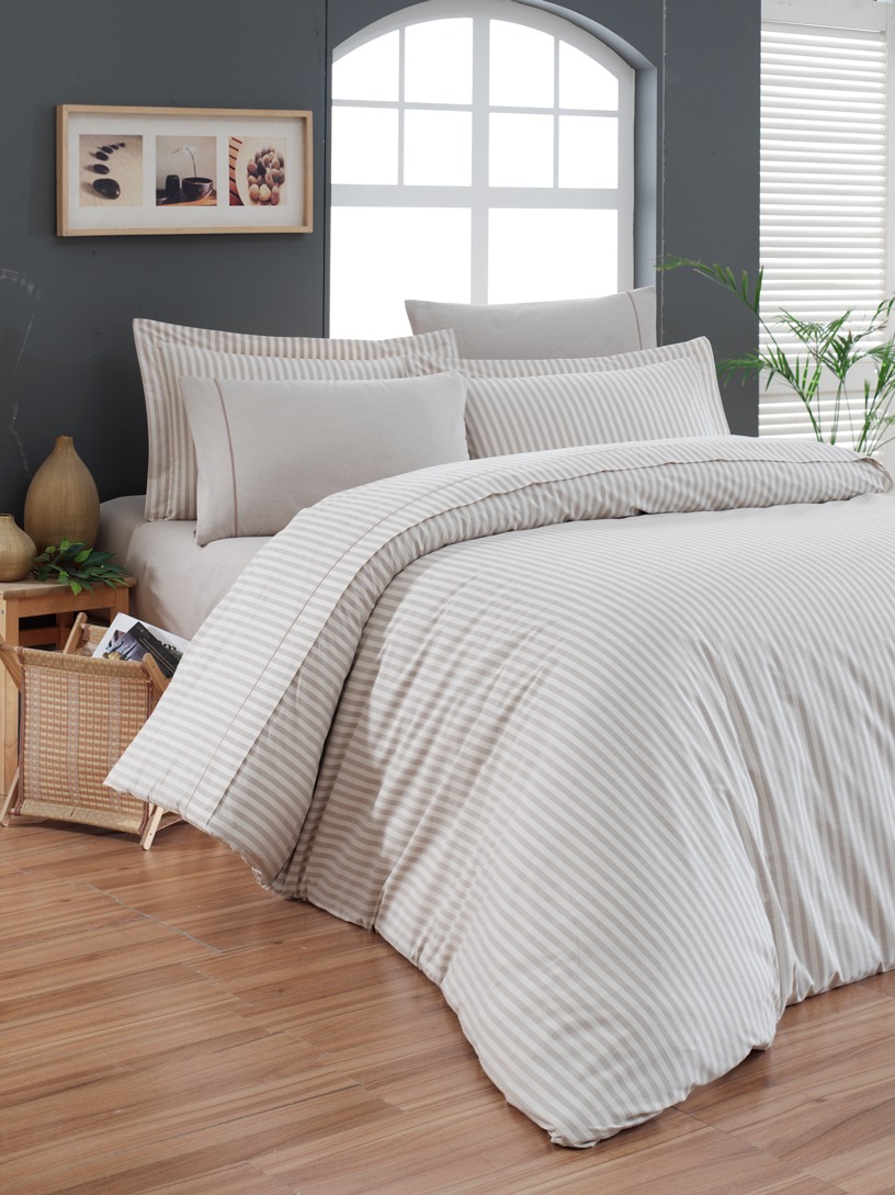 Для производства постельного белья серии "LINES STRIPES" торговой марки "Maison D'or" используется трикотаж разновидности Ринг (100% хлопок). Для изготовления полотна используются волокна хлопка средней длины 27-35 мм, что обеспечивает изделиям небольшую рыхлость и ворсистость.