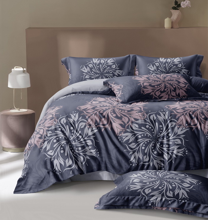 Комплекты выполнены из основной ткани - наружная поверхность пододеяльника и наволочек, и ткани компаньона - простыня, обратная сторона пододеяльника и наволочек.