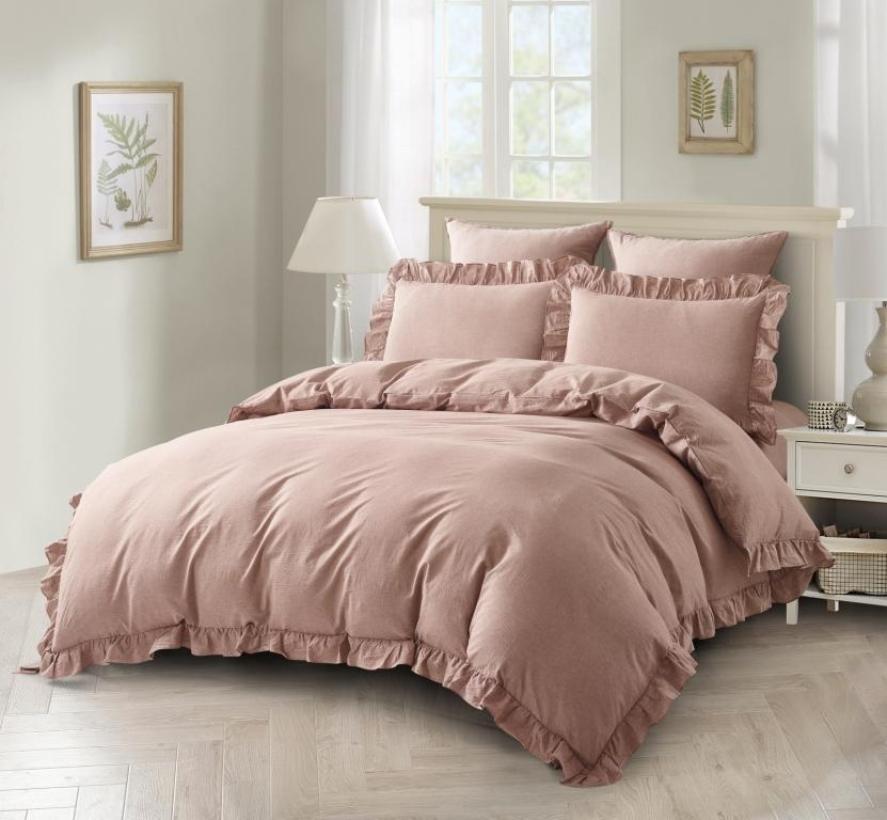 Постельное бельё с рюшами серии VJ торговой марки "Karteks", выполненное из "варёного хлопка", отличается лёгким жатым эффектом, повышенной плотностью, износостойкостью, воздухопроницаемостью, выдерживает многочисленные стирки.