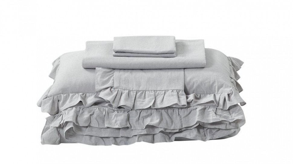 Постельное бельё с рюшами серии VJ торговой марки "Karteks", выполненное из "варёного хлопка", отличается лёгким жатым эффектом, повышенной плотностью, износостойкостью, воздухопроницаемостью, выдерживает многочисленные стирки.