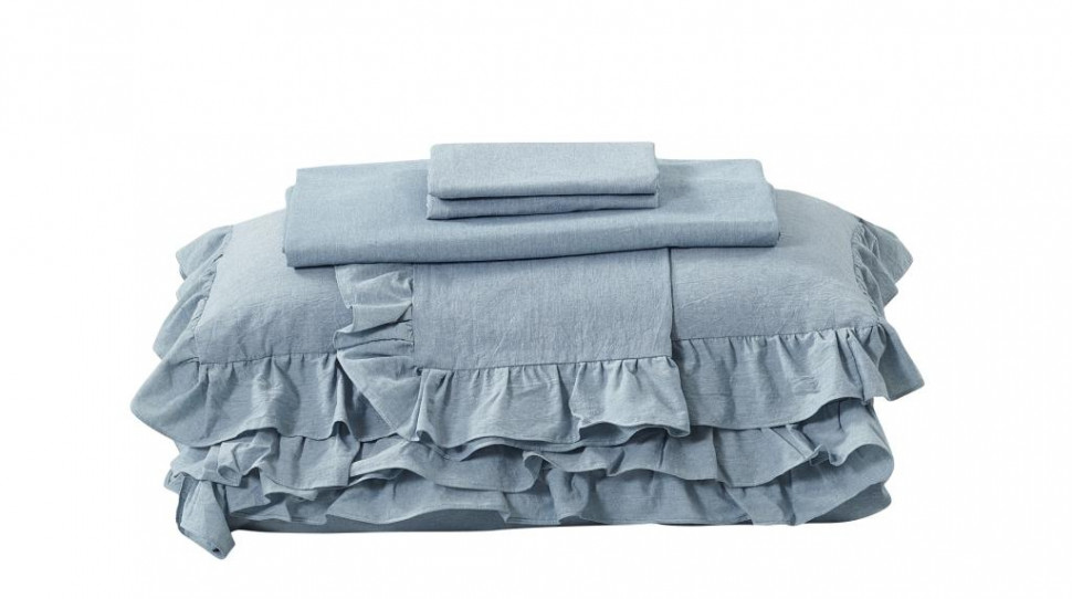 Постельное бельё с рюшами серии VJ торговой марки "Karteks", выполненное из "варёного хлопка", отличается лёгким жатым эффектом, повышенной плотностью, износостойкостью, воздухопроницаемостью, выдерживает многочисленные стирки.