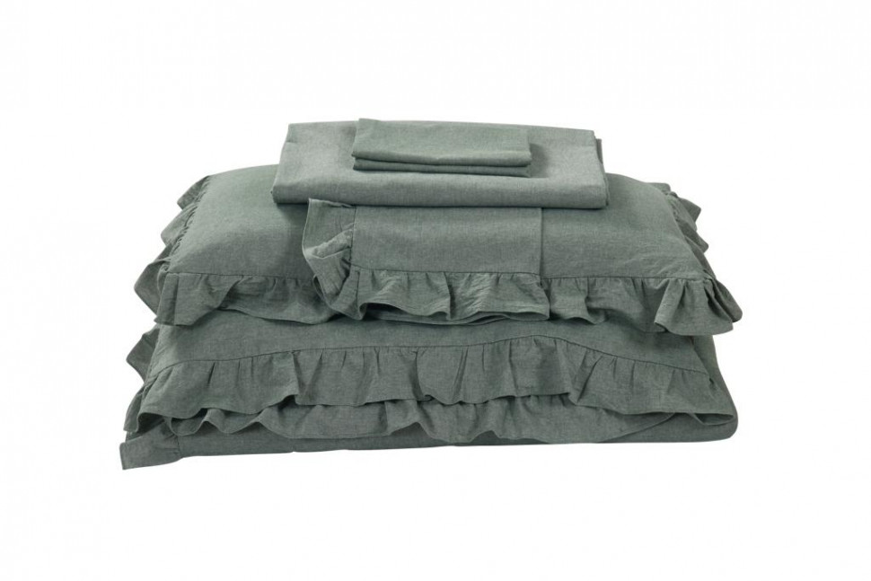 Постельное бельё с рюшами серии VJ торговой марки "Karteks", выполненное из "варёного хлопка", отличается лёгким жатым эффектом, повышенной плотностью, износостойкостью, воздухопроницаемостью, выдерживает многочисленные стирки.