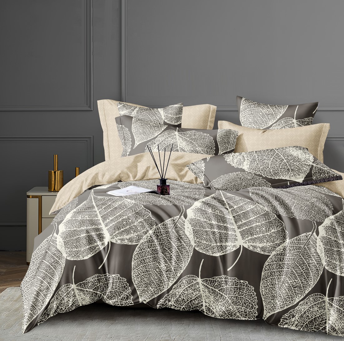 Комплекты выполнены из основной ткани - наружная поверхность пододеяльника и наволочек, и ткани компаньона - простыня, обратная сторона пододеяльника и наволочек.