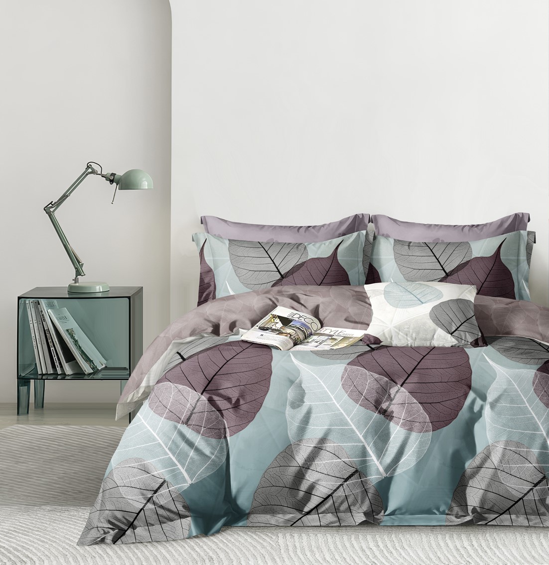 Комплекты выполнены из основной ткани - наружная поверхность пододеяльника и наволочек, и ткани компаньона - простыня, обратная сторона пододеяльника и наволочек.