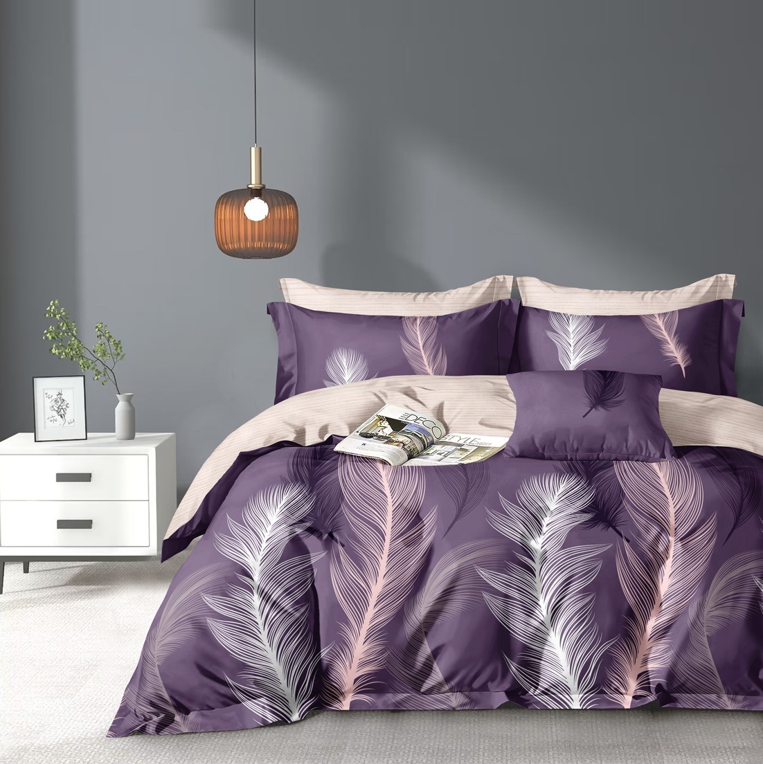 Комплекты выполнены из основной ткани - наружная поверхность пододеяльника и наволочек, и ткани компаньона - простыня, обратная сторона пододеяльника и наволочек.