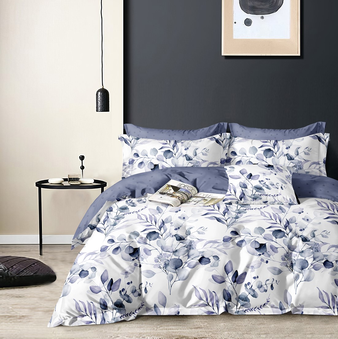 Комплекты выполнены из основной ткани - наружная поверхность пододеяльника и наволочек, и ткани компаньона - простыня, обратная сторона пододеяльника и наволочек.