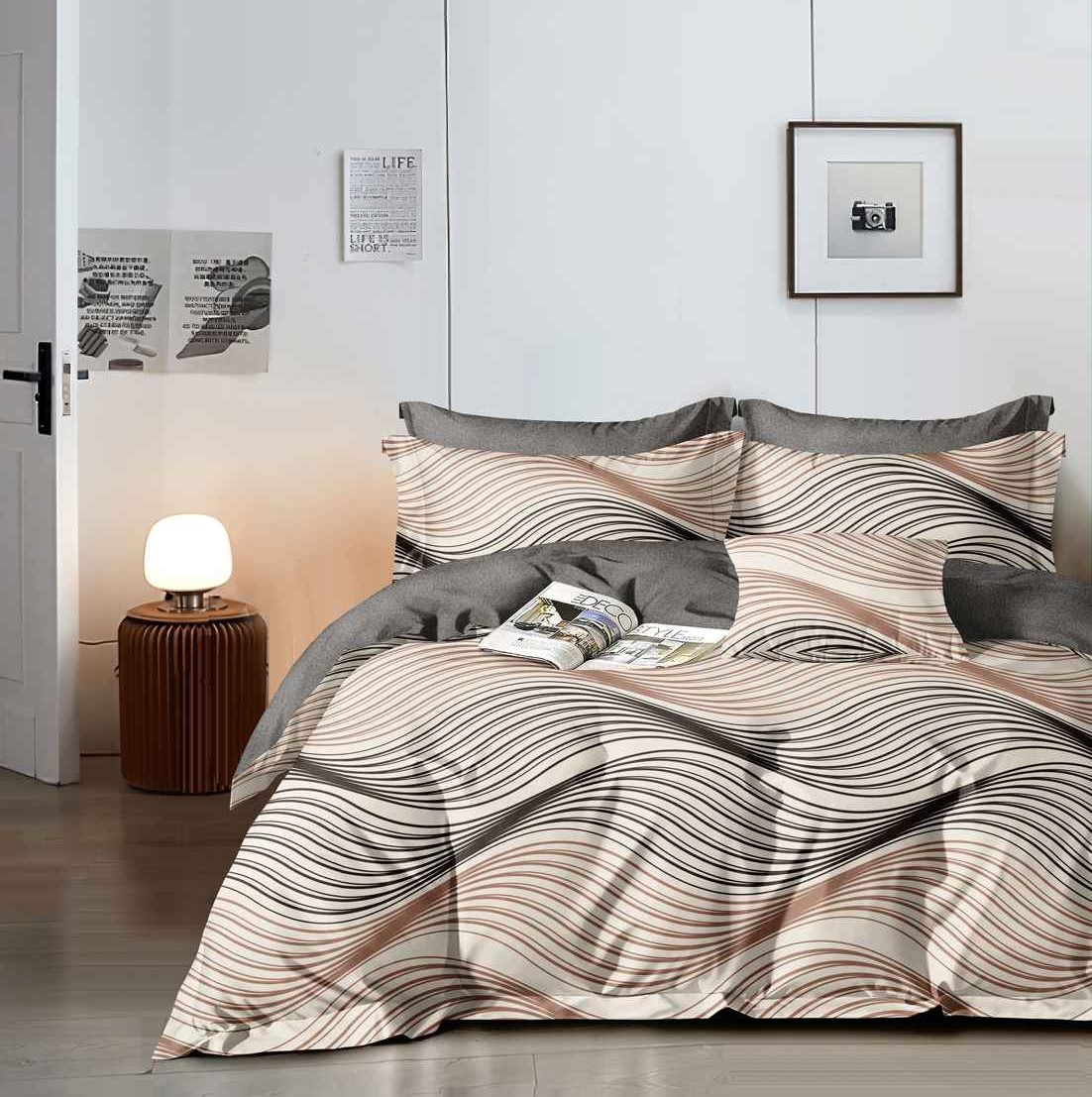 Комплекты выполнены из основной ткани - наружная поверхность пододеяльника и наволочек, и ткани компаньона - простыня, обратная сторона пододеяльника и наволочек.