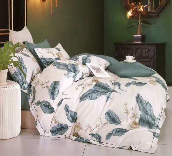 Комплекты выполнены из основной ткани - наружная поверхность пододеяльника и наволочек, и ткани компаньона - простыня, обратная сторона пододеяльника и наволочек.