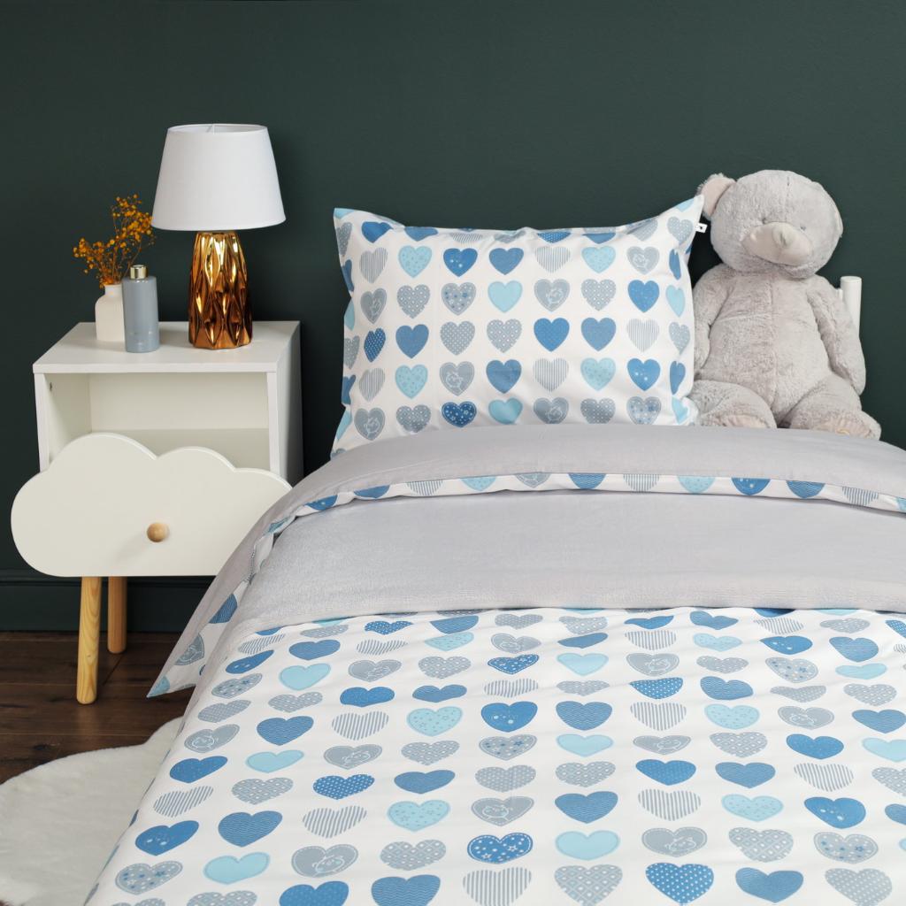 Постельное белье "Siberia" Сердечки (синий) Ранфорс, 1,5 спальный
