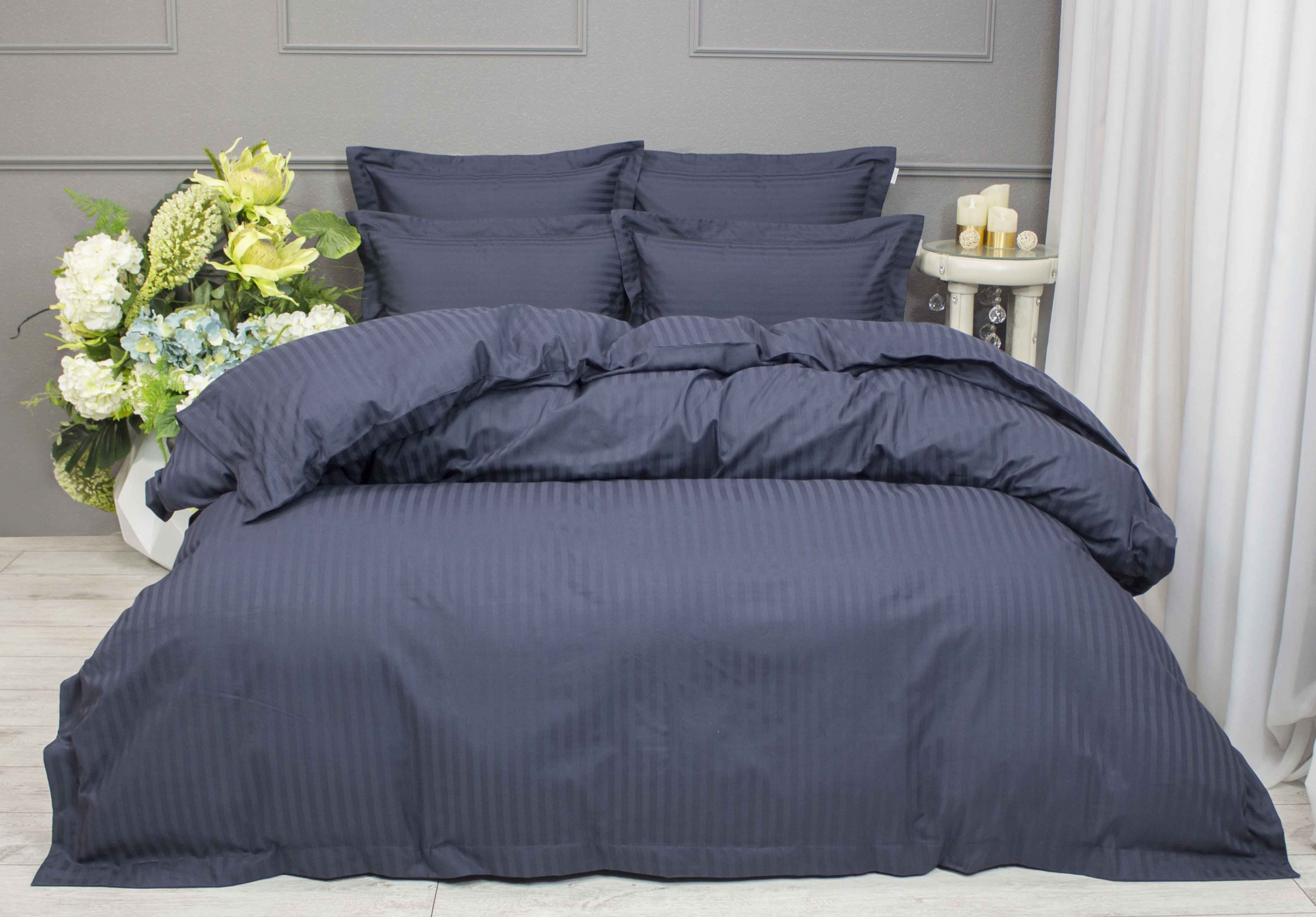 Постельное белье "Kazanov.A." Hotel (индиго платина) Страйп Сатин, Евро