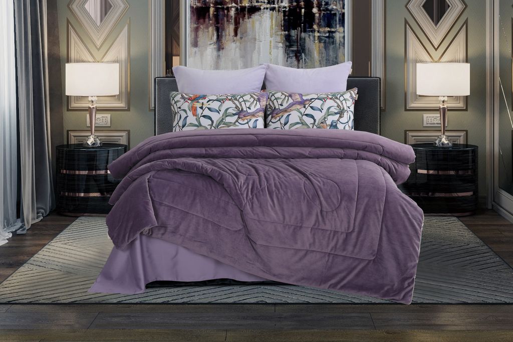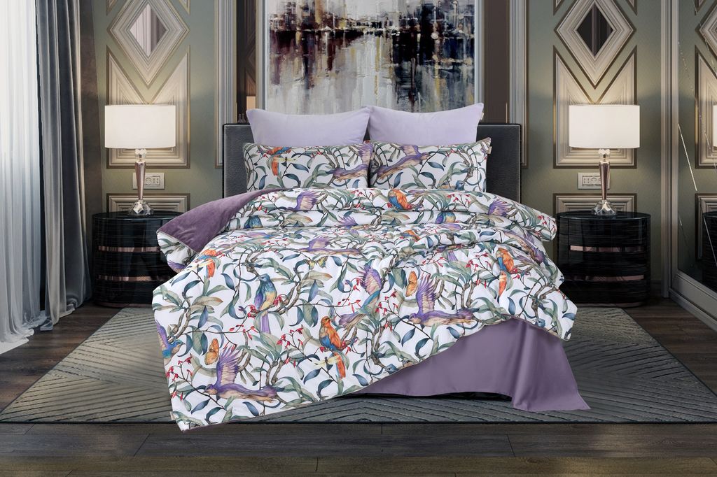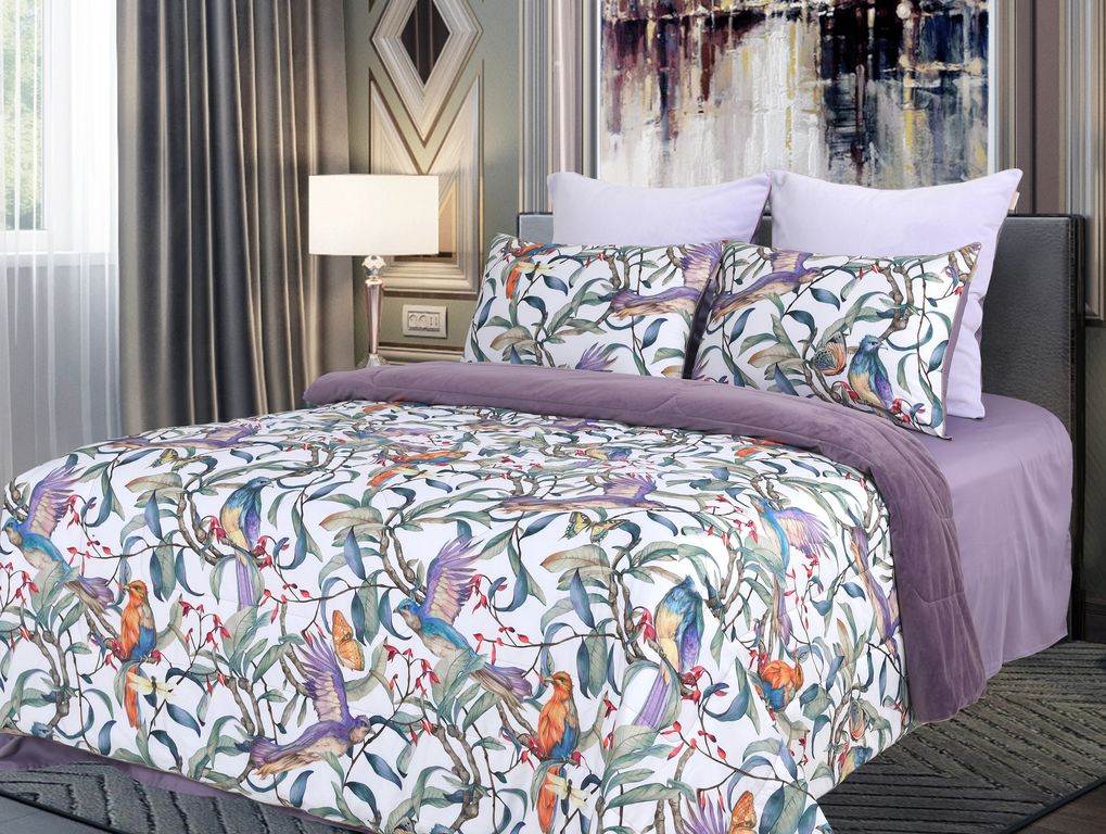 Постельное белье с одеялом "Kazanov.A." Колибри (аметист/жемчуг) Велюр/Egypt Cotton, Семейный