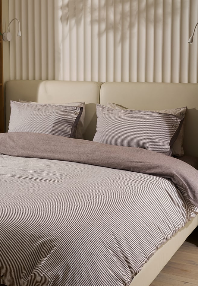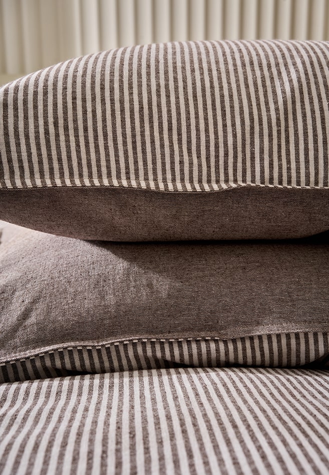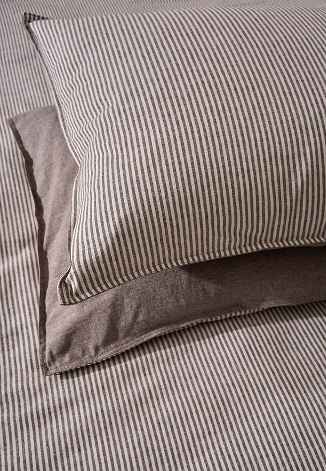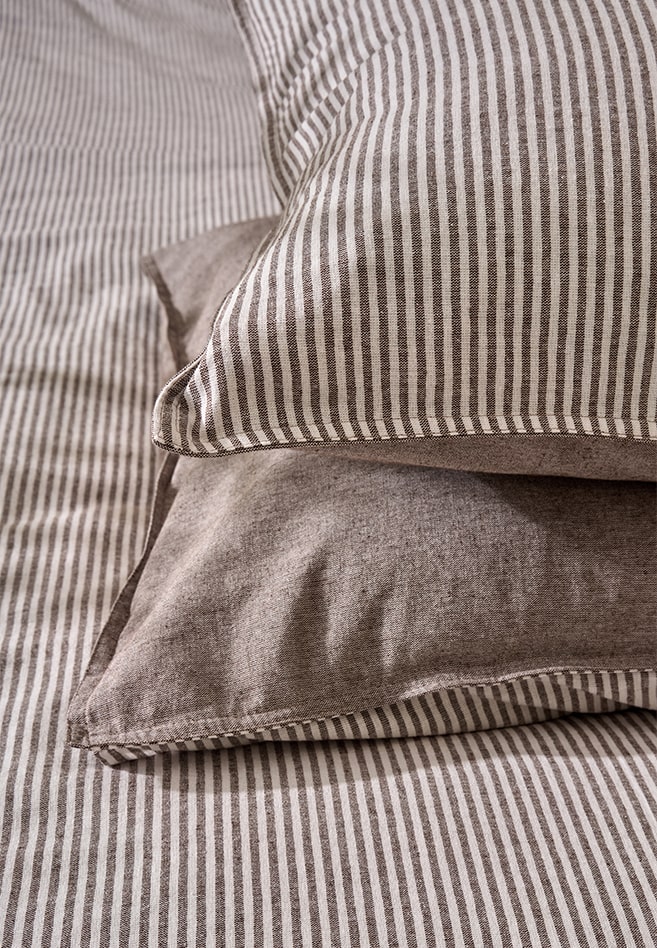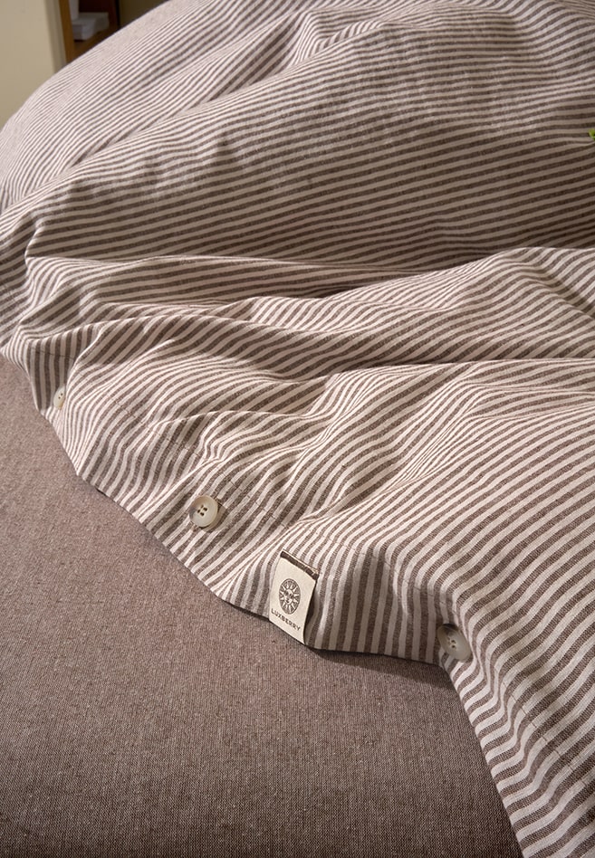 Постельное бельё Luxberry "ЛЁН И ХЛОПОК" 1,5 спальный, белый/коричневая полоса