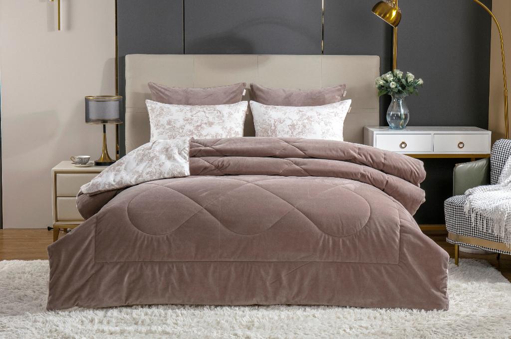 Постельное белье с одеялом "Kazanov.A." Жадор (капучино молоко) Велюр/Сатин, Евро
