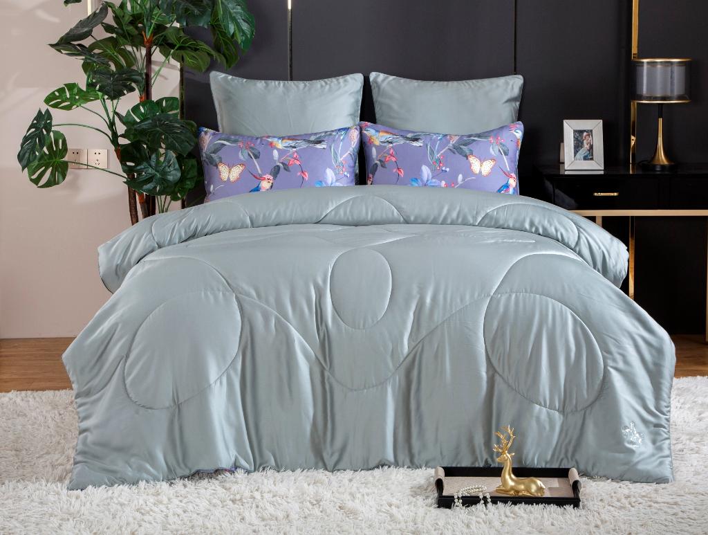 Коллекция "Тенсел-Хлопок" представляет собой комбинацию постельного белья и лёгкого одеяла в чехле. В качестве наполнителя одеяла используется эковолокно-микрогель.