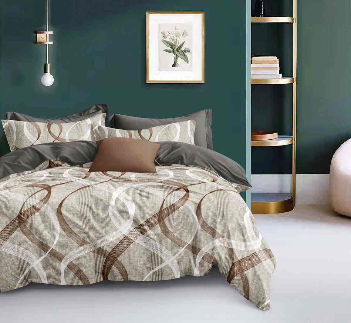 Комплекты выполнены из основной ткани - наружная поверхность пододеяльника и наволочек, и ткани компаньона - простыня, обратная сторона пододеяльника и наволочек.