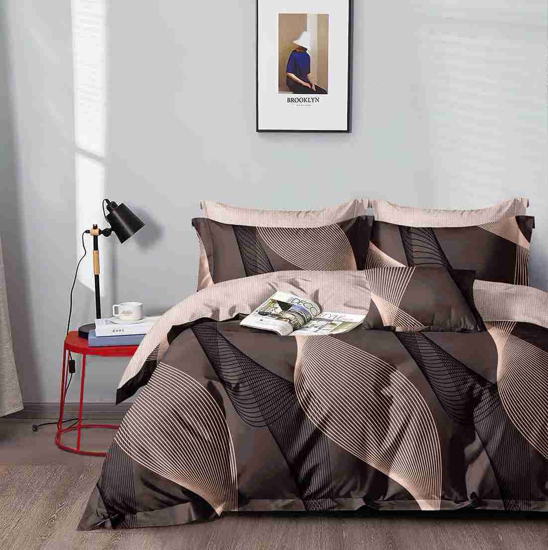 Комплекты выполнены из основной ткани - наружная поверхность пододеяльника и наволочек, и ткани компаньона - простыня, обратная сторона пододеяльника и наволочек.