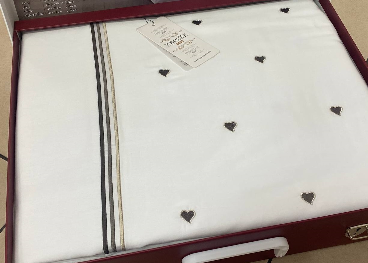 Постельное бельё "Maison D'or" LAMOUR Сатин Евро, бело-коричневый