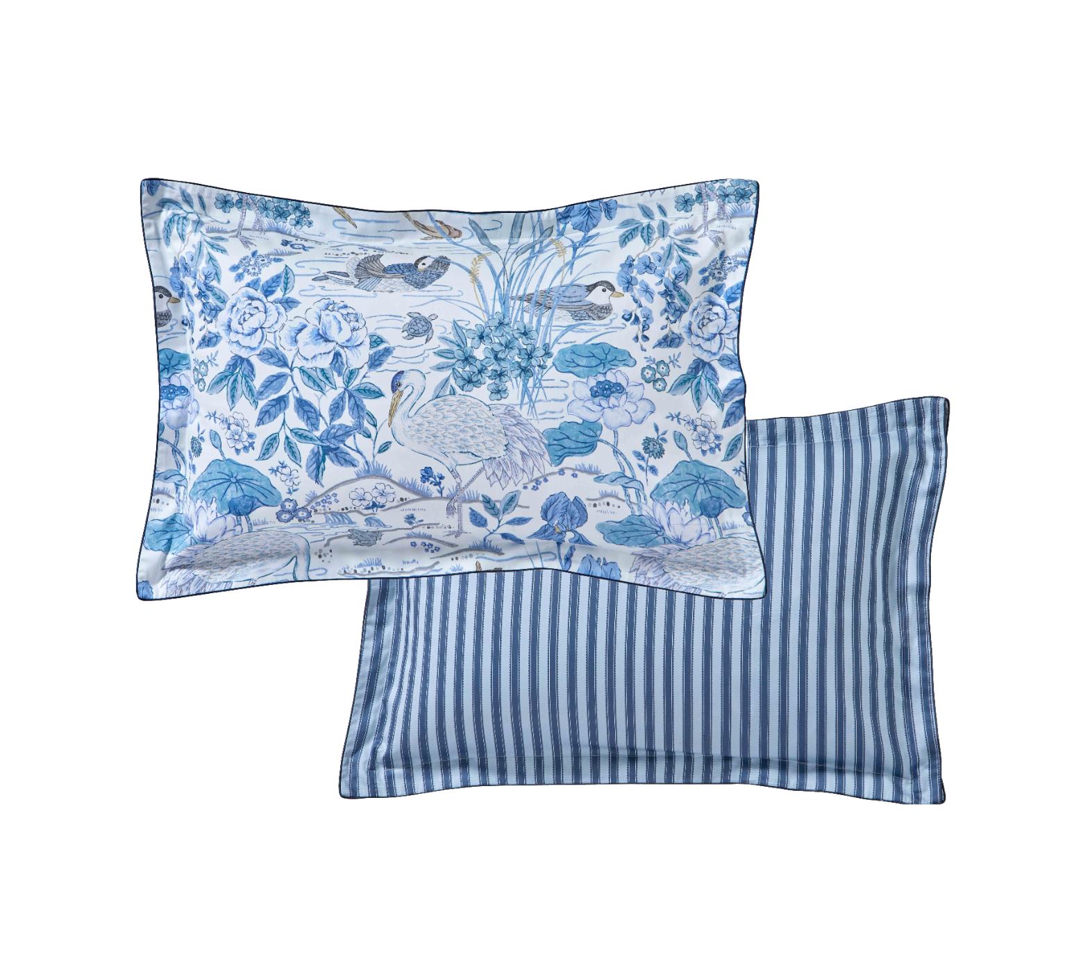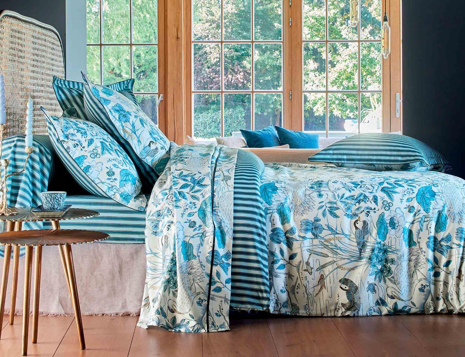 Постельное бельё "Blanc des Vosges" WATER GARDEN BLEU Сатин ДеЛюкс, Евро