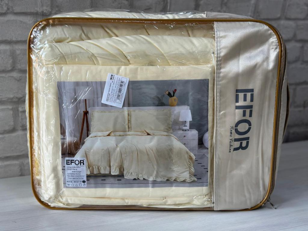 Постельное бельё с одеялом EFOR SATEN с рюшами (кремовый), Евро