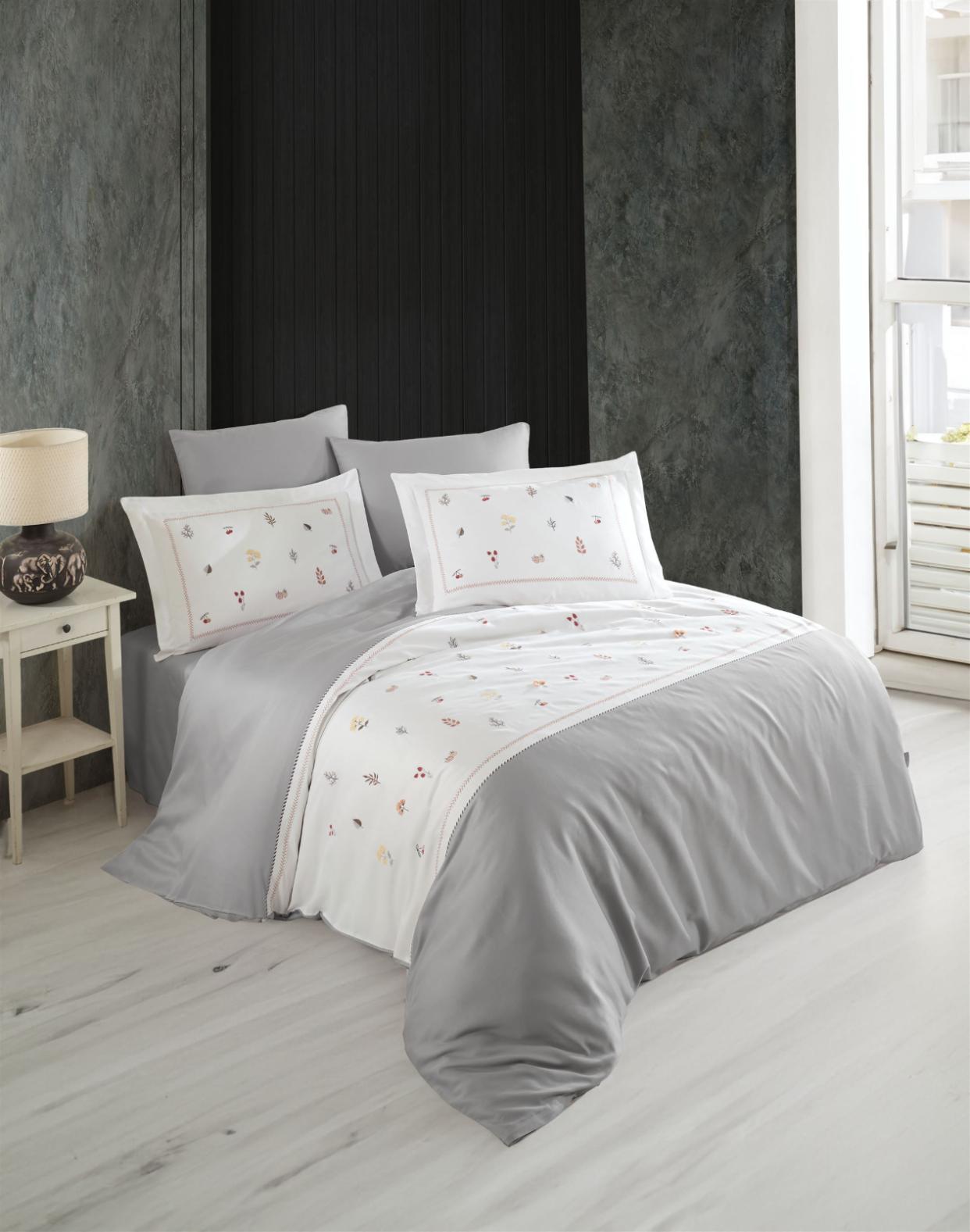 Постельное бельё "DANTELA VITA" сатин с вышивкой BENEDICT (серый), Евро