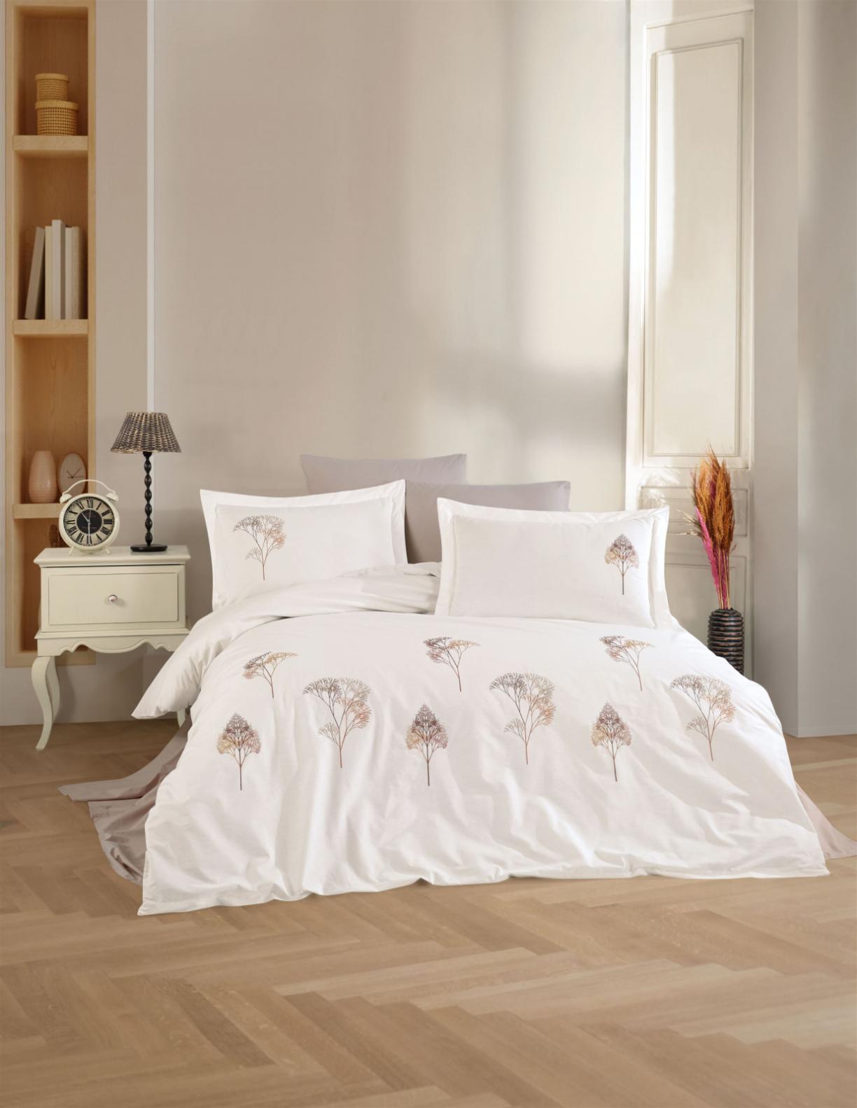 Постельное бельё "DANTELA VITA" поплин с вышивкой JOVIA (кремовый), Евро