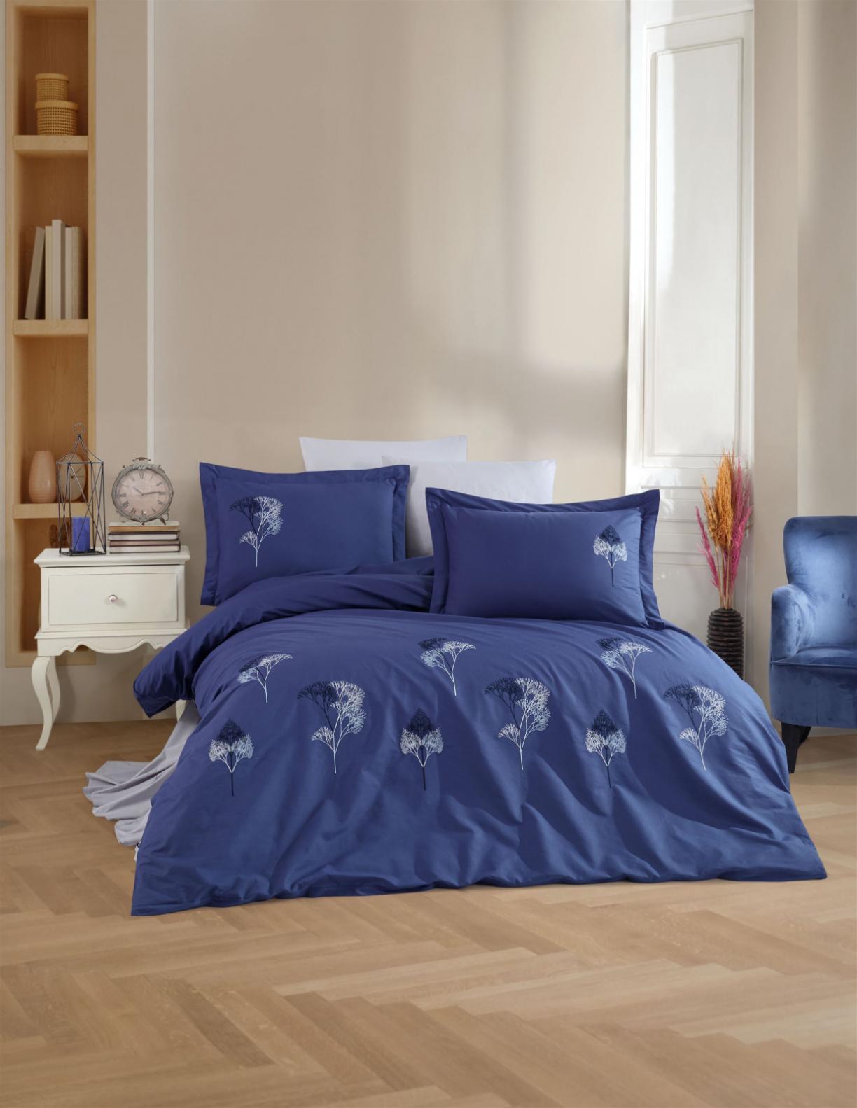 Постельное бельё "DANTELA VITA" поплин с вышивкой JOVIA (синий), Евро