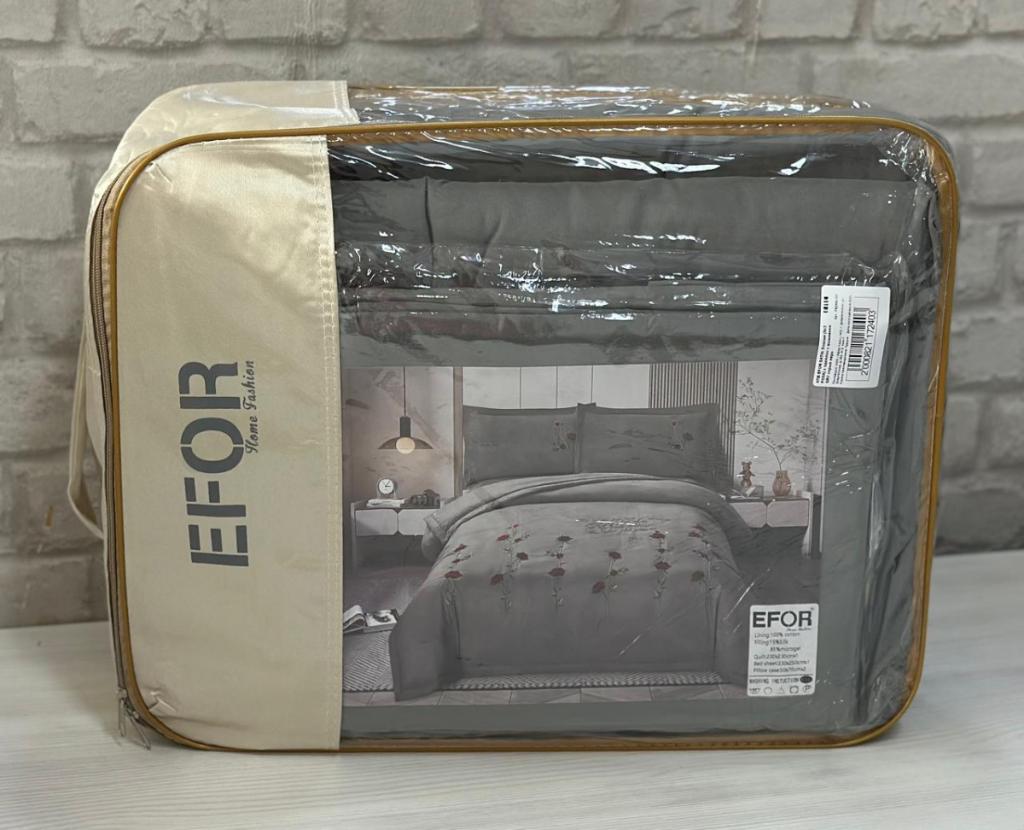 Постельное бельё данной серии торговой марки «EFOR» выполнено из сатина на основе смеси волокон хлопка и полиэстера. Вместо пододеяльника в комплект входит одеяло с наполнителем из смеси волокон микрогеля и шёлка. В качестве декоративного элемента используется элегантная вышивка.