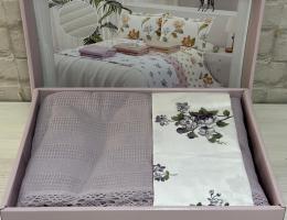 Постельное белье с одеялом EFOR SATEN "Эмилия №3 РОЗА MINT", Евро