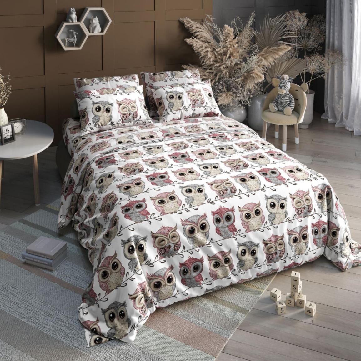 Постельное белье Valtery "Совушки (розовые)" Поплин, 1.5 спальный