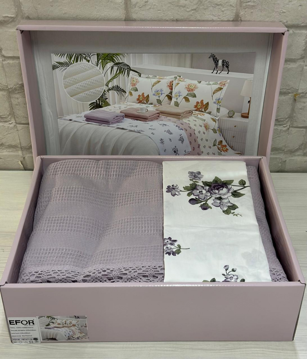 Постельное белье EFOR "COTTONI" с вафельным покрывалом 220х240, Евро (сиреневый)