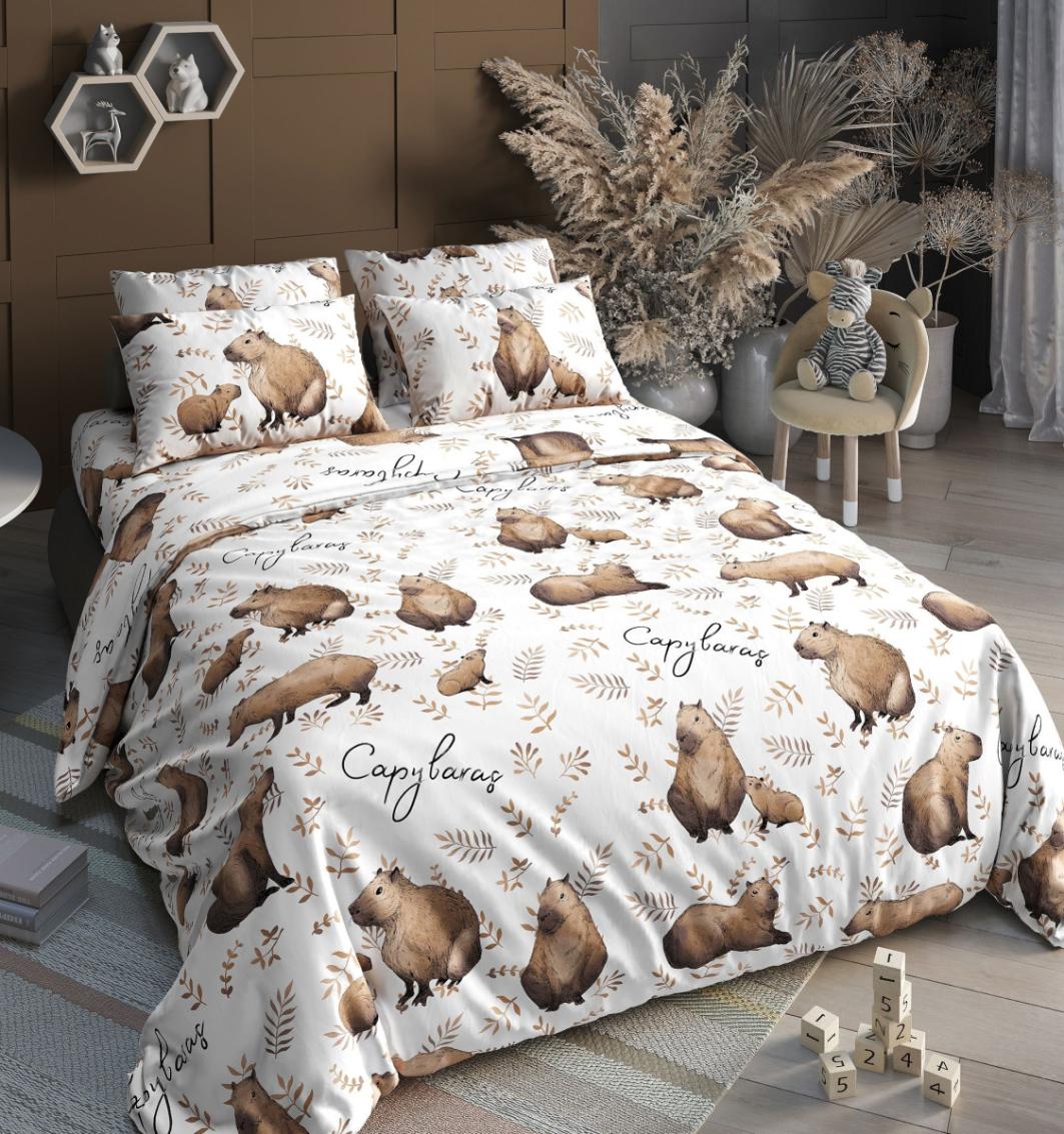 Постельное белье Valtery "Капибары (бежевый)" Поплин, 1.5 спальный