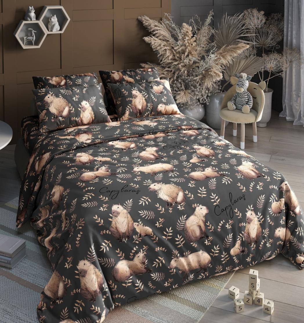 Постельное белье Valtery "Капибары (коричневый)" Поплин, 1.5 спальный