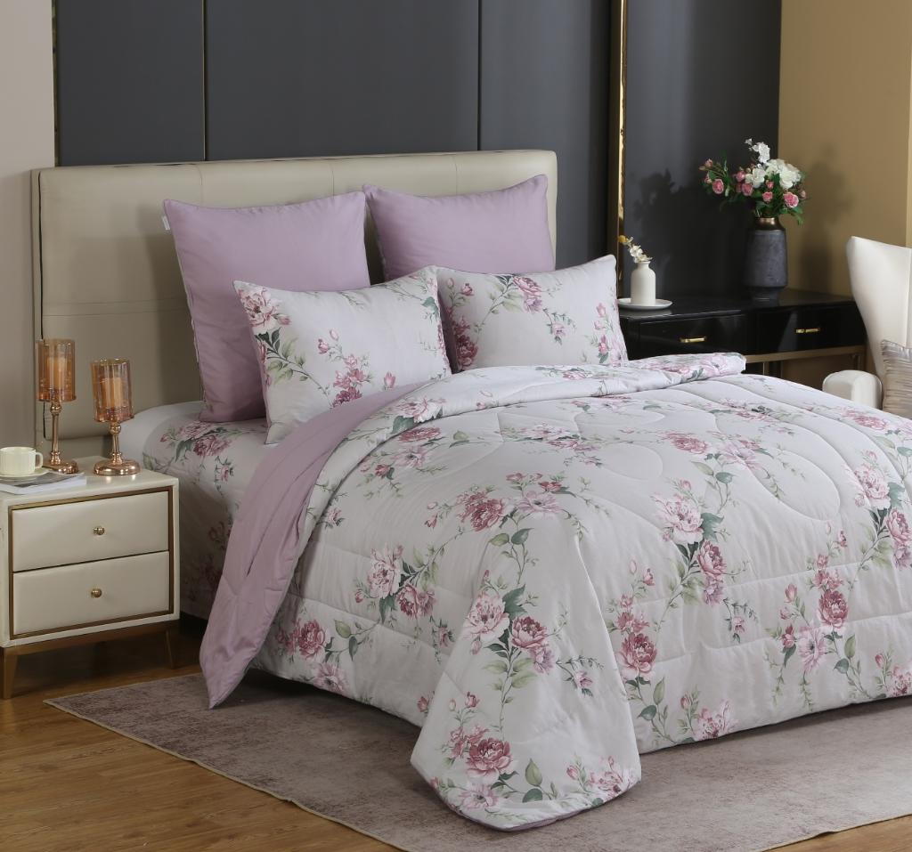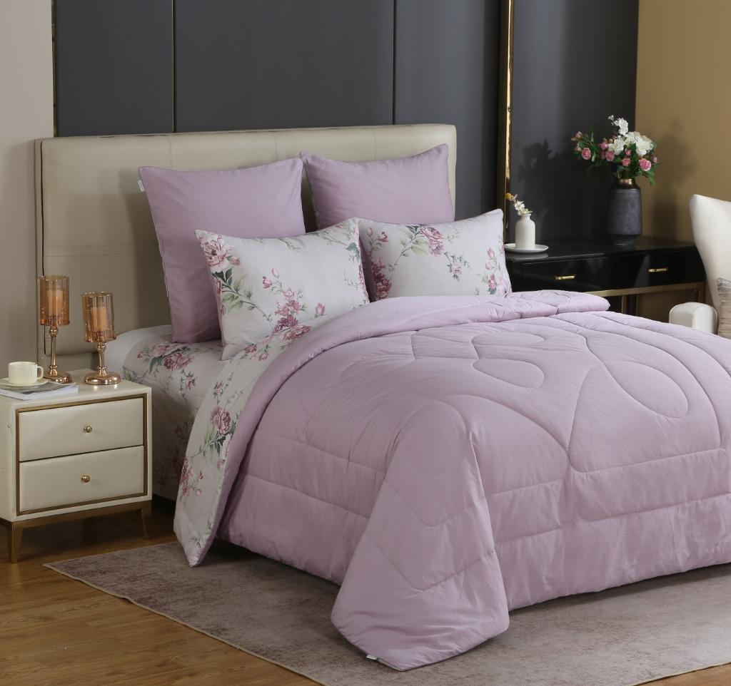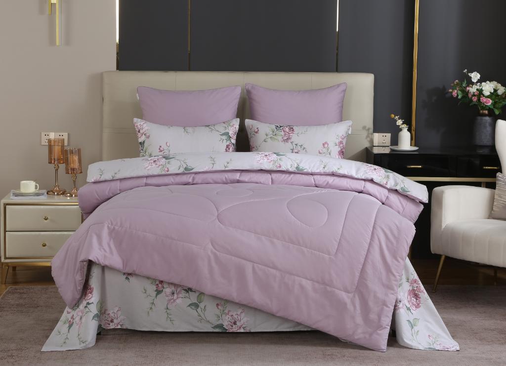 Всесезонная коллекция "Dolce Fiore Cotton" представляет собой комбинацию постельного белья и лёгкого двустороннего одеяла в чехле. В качестве наполнителя одеяла используется эковолокно-микрогель. Наволочки, простыня и чехол одеяла выполнены из сатина (100% хлопок). Изделие неприхотливо в уходе, легко стирается и быстро высыхает.