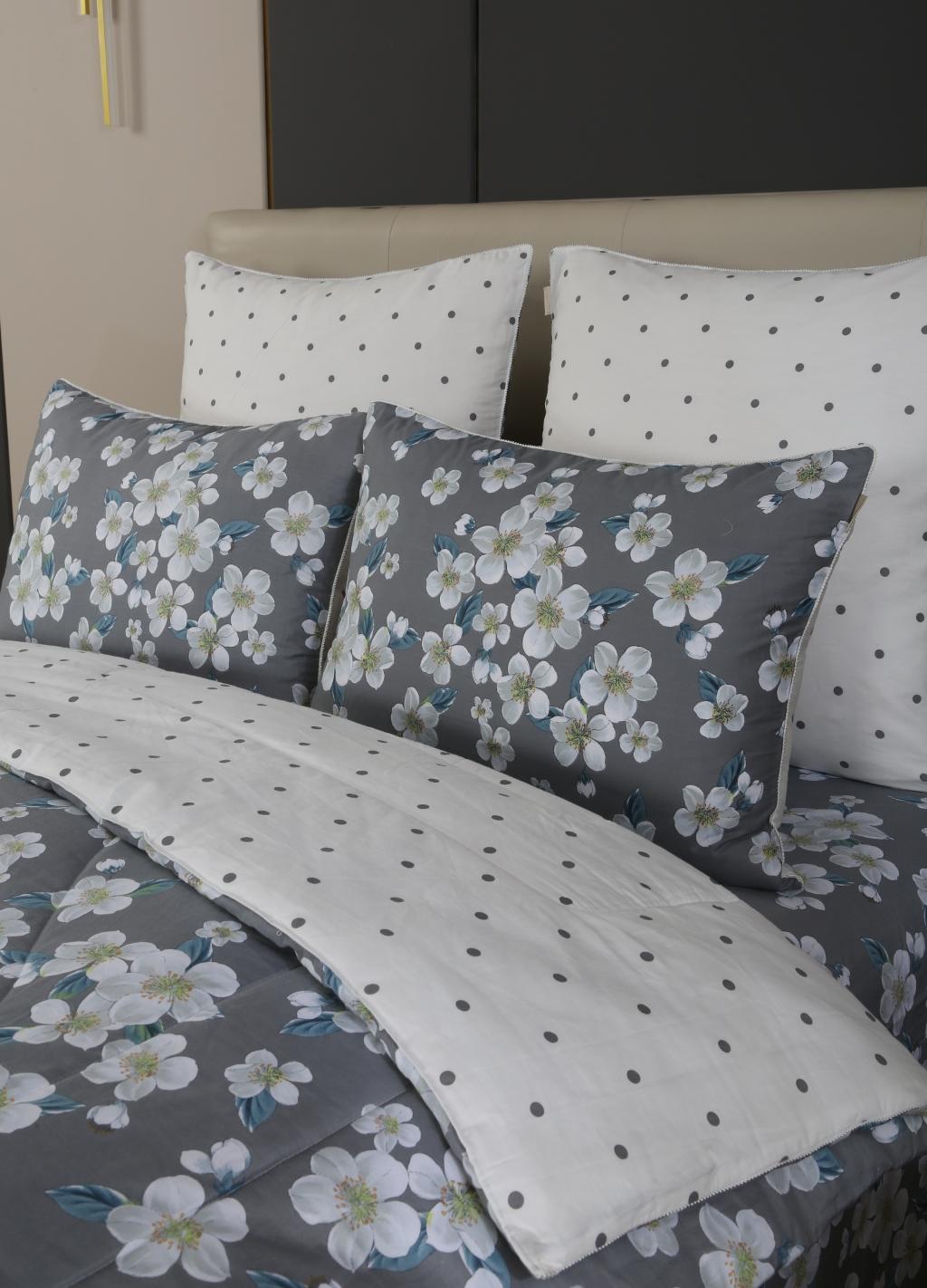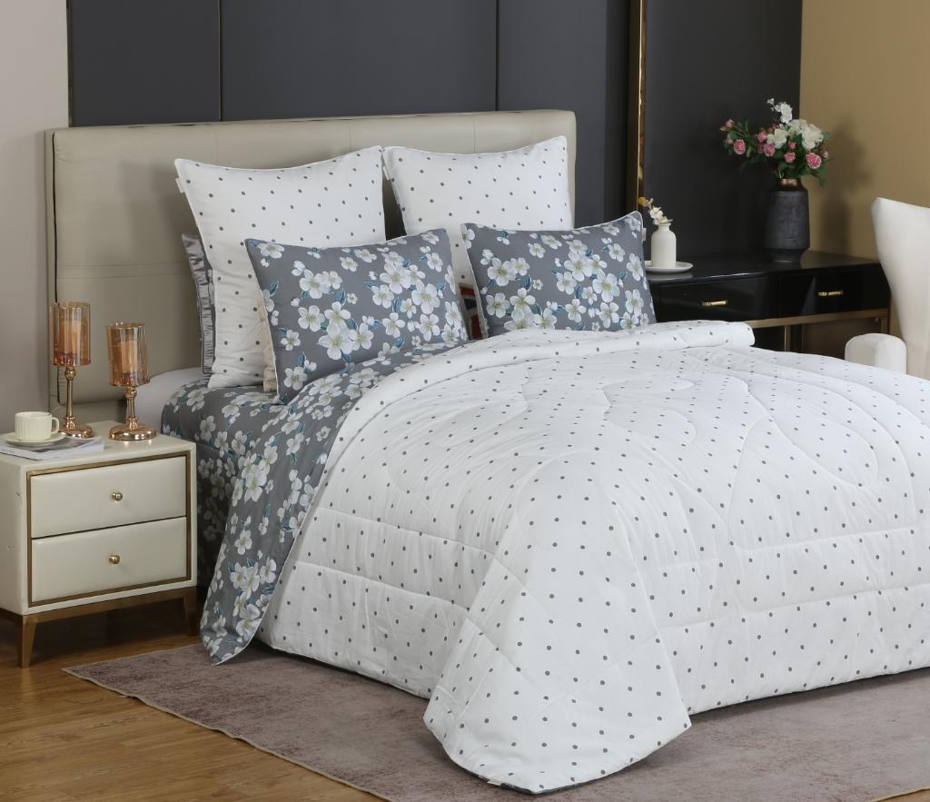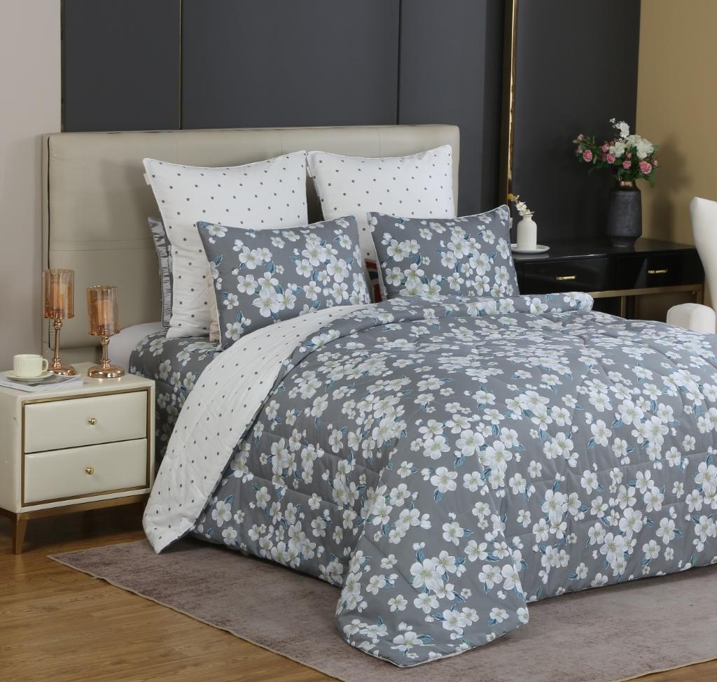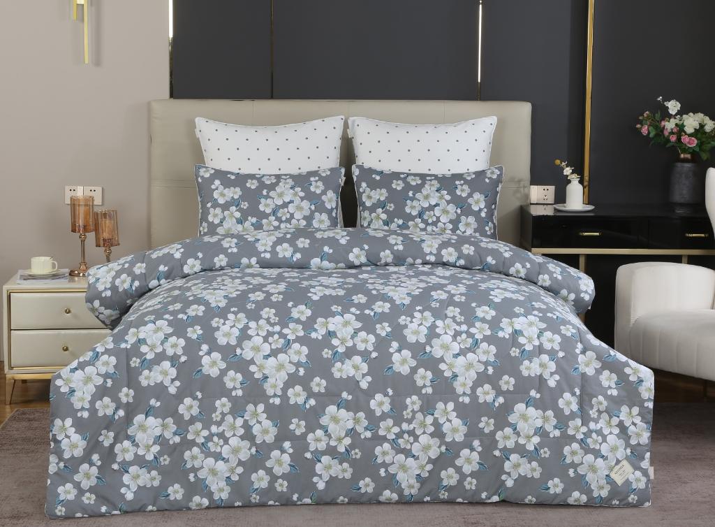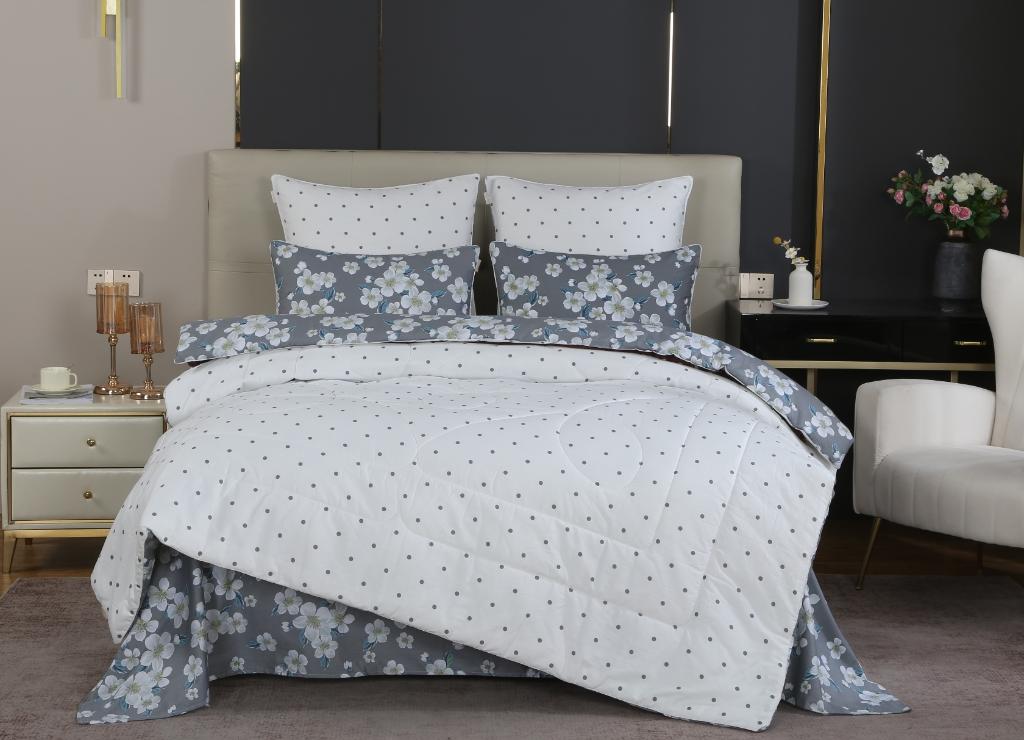 Всесезонная коллекция "Dolce Fiore Cotton" представляет собой комбинацию постельного белья и лёгкого двустороннего одеяла в чехле. В качестве наполнителя одеяла используется эковолокно-микрогель. Наволочки, простыня и чехол одеяла выполнены из сатина (100% хлопок). Изделие неприхотливо в уходе, легко стирается и быстро высыхает.